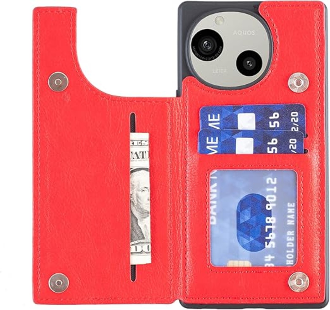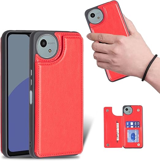 for AQUOS sense9 SH-53E SHG14 SH-M29 ケース スタンド機能 ケース ICカード収納 カード 背面カード収納 左と右の電話ケースを反転、シンプルなレトロなファッション、防水と防汚電話ホルダー、多機能財布収納付き、PUレザー、TPUソフトインナー(赤) a