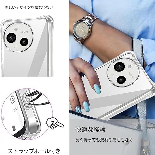 LAYJOY AQUOS sense9 ケース 透明ソフトTPU 米軍MIL規格 耐衝撃 カバー『SH-53E SHG14 SH-M29 対応』 [ 四隅?化保護 シリコン 軟性 全透明 全面保護 衝撃吸収] 対応 「ストラップホール付き」アクオスセンス9 スマホケース(クリア) a
