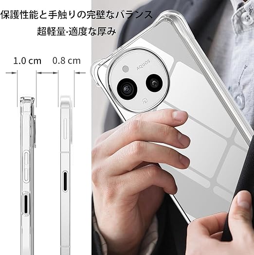 【衝撃吸収】 ゴムやシリコンのように柔らかいTPU素材使用!!本体に完全フィットし、全体を包み込むデザイン。保護ケースの四隅にエアショックパッドを設置して、スマートフォンが落下などの衝撃を吸収し、大切なAQUOS sense9 SH-53E SHG14を守ります.