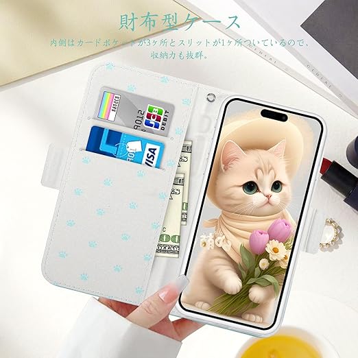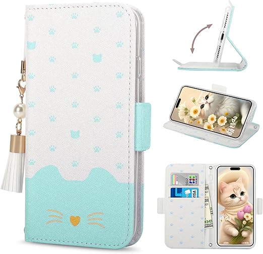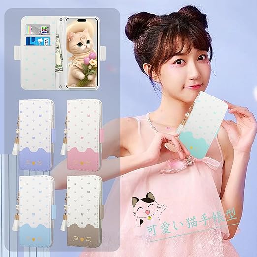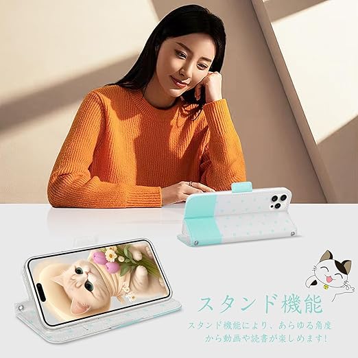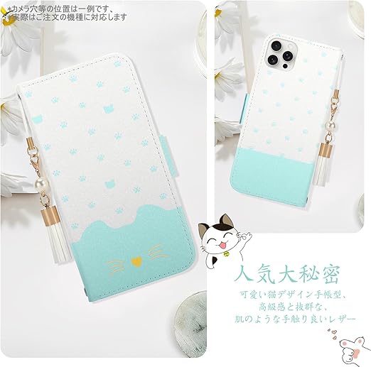 AQUOS wish3 ケース手帳型docomo SH-M25 SH-53D A302SH ケース アクオスwish3ケース wish3手帳型 ケース かわいい猫 チャーム な タッセル ストラップ付き人気 財布型 カード収納 アクオス ウィッシュ3ケース スマホケース (AQUOS wish3,グリーン) a