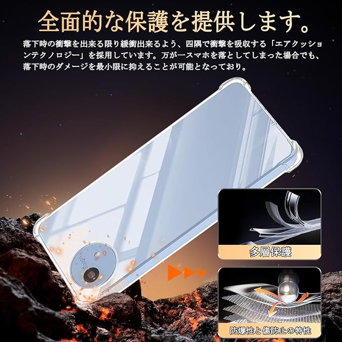 【極上の透明感&高タッチ感】高品質素材の黄変防止TPUを採用することで、手に馴染む触感、赤ちゃんの肌のような柔らかくて心地よい触りを実現しました。透明度が高く、スマホ本来の美しさを損なわなず、全体高級感溢れます。この強化ガラスフィルム