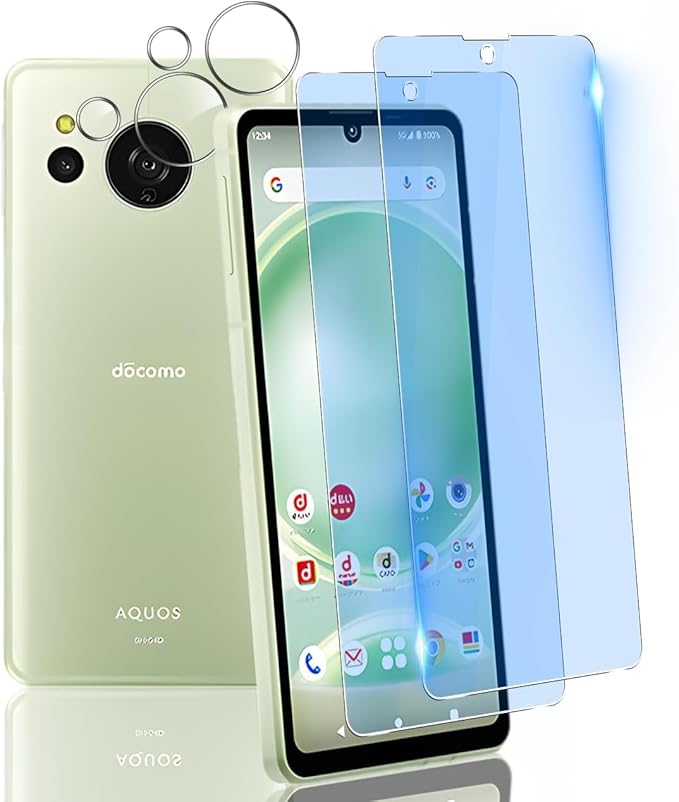 【専用設計・硬度9H超え】 AQUOS sense8 / sense7 / SH-54D / SHG11 フィルム 専用に設計されています。ガラスフィルム ブルーライト2枚+レンズ保護フィルム2枚。 (高 品質 日本製素材,気泡の侵入を防ぎ、簡単に貼り付けることができます、 ガラスフィルムは非常に滑らかです。)商品は一枚一枚手作業で検査しましたので、品質は非常に安定しております。安心して当社の製品をお買い求めください。