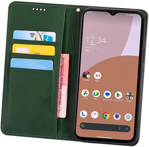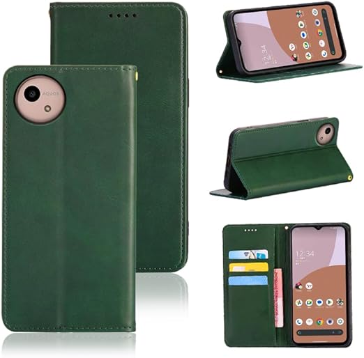 に適用するAquos Wish 4 SH-52E ケース 手帳型 ノートブック型携帯電話保護カバー多機能 ホルダーバンプパターンテクスチャ (グリーン) a