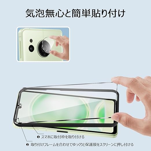AQUOS sense8 ガラスフィルム 2枚+ カメラフィルム 2枚 全面保護 硬度9H キズ防止 【ガイド枠付き/ケースに干渉しない】高透過率 飛散防止 自?吸着 気泡防止 指紋防止 ケース対応 アクオスセンス8 保護フィルム a