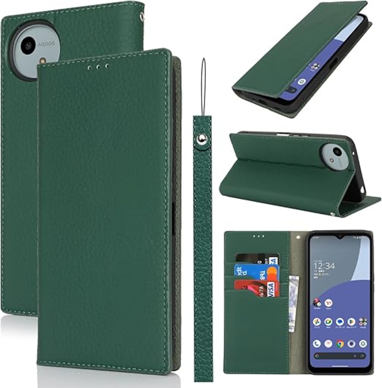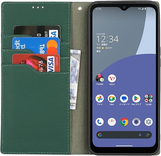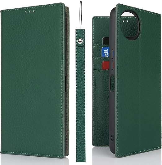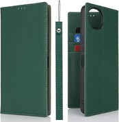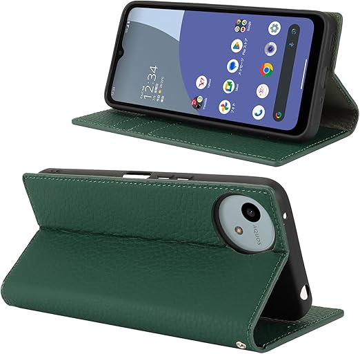 Eastwave Aquos Wish4 ケース 本革 牛革 SH-52E A402SH ケース 手帳型 カバー AQUOS WISH 4 SH-52E A402SH SH-M27 対応 手帳 本革 柔らかい 本皮 スプラットホール付き スプラット同梱 内蔵マグネット - ダークグリーン a