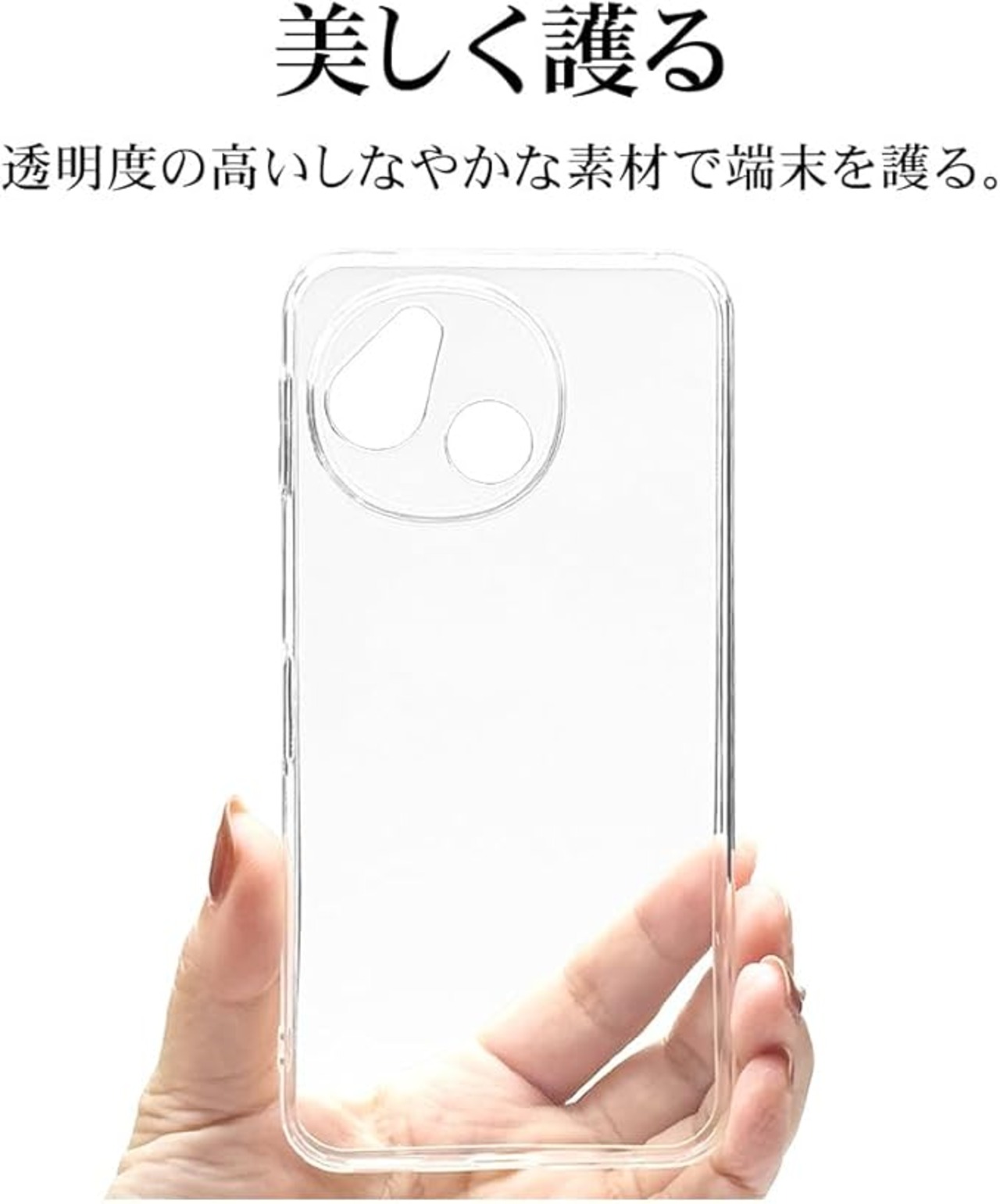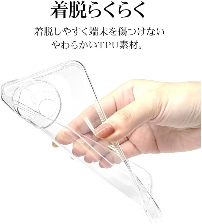 【滑りにくい+衝撃吸収】素材はTPU(熱可塑性ポリウレタン)樹脂で本体の側面と背面をしっかりとカバー。 ゴムのようなしなやかな弾力性と硬質プラスチックのような強靭さが特徴。滑りにくく、しなやかなTPU素材で 優しく端末を守ります。 (※当社ハードケースと比較した場合)