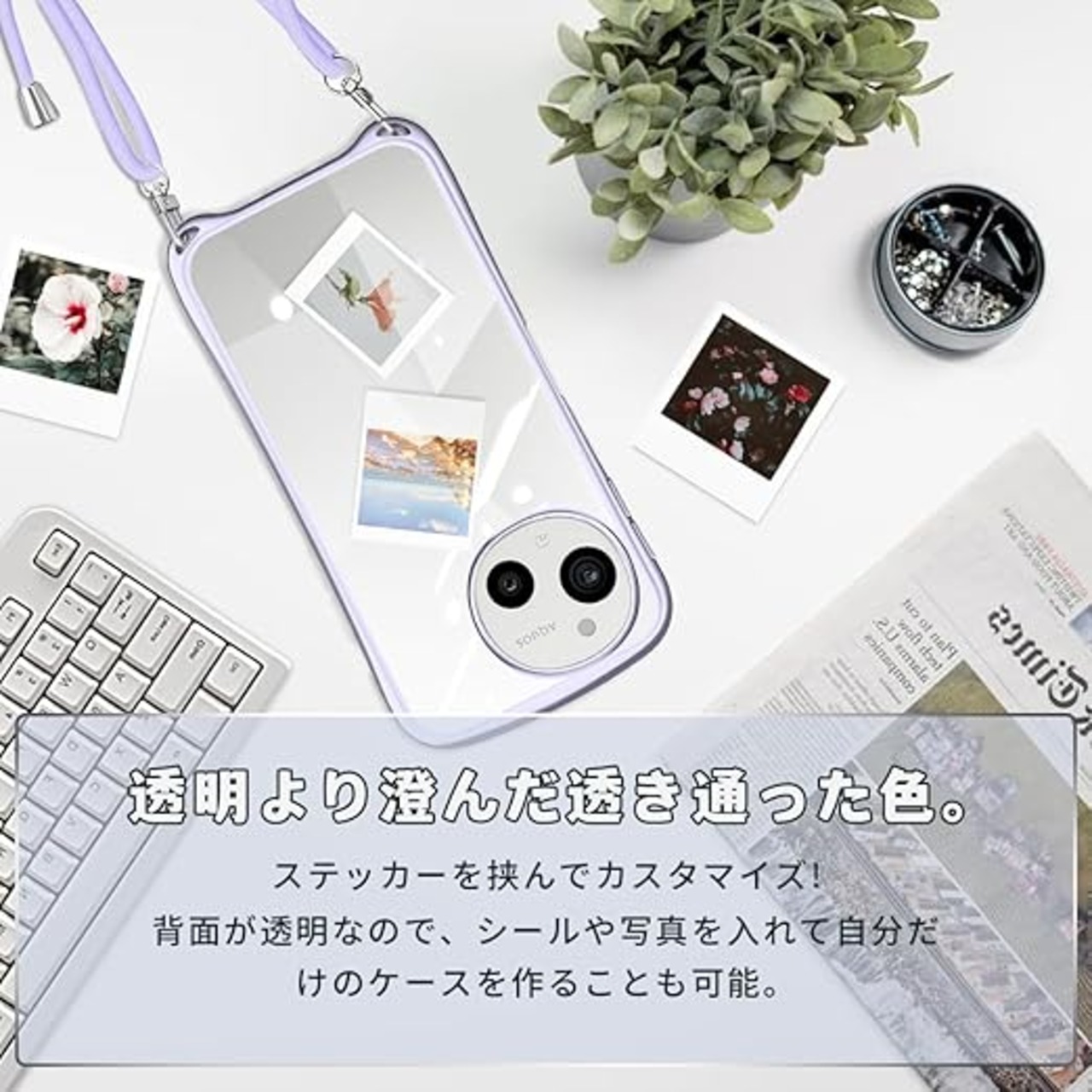 AQUOS sense9 SH-53E ケース クリア ショルダー ストラップ付き sense9 SHG14 カバー 肩掛け 縄掛け 斜めかけ 透明 TPU 耐衝撃 全面保護 薄型 韓国 可愛い 首掛け アクオス センス9 SH-M29 スマホケース (スターリバーシルバー) a