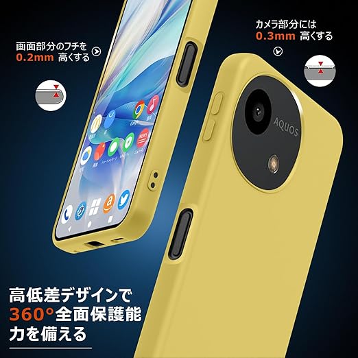 PNEWQNE AQUOS wish4 用ケース シリコン 柔軟TPU 耐衝撃 薄型 すり傷防止 SH-52E ケース レンズ保護 軽量 脱着簡単 アクオス センス4 カバー 滑り防止 ストラップホール付き 一体型 携帯カバー 黄 WY94-81 a