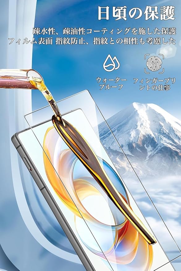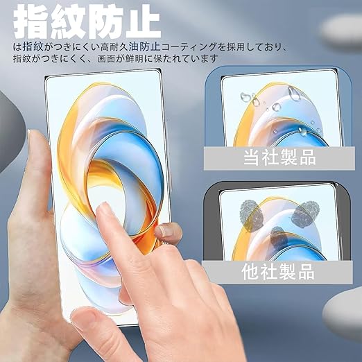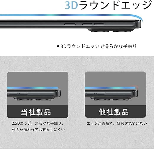 【特徴1】2.5Dラウンドエッジ加工、HD画面、硬度9H、透過率99%、撥油性 疎水性 指紋防止 耐衝撃、気泡ゼロ 貼り付け簡単な保護フィルム です。