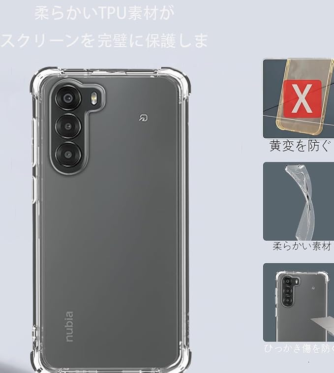 For Nubia S 5G ケース【BAOLINTX】 耐衝撃 TPU素材 薄型軽量 柔軟 指紋防止 黄変防止 擦り傷防止 レンズ保護 着脱簡単 Nubia S 5G 用 ケース(クリア) a