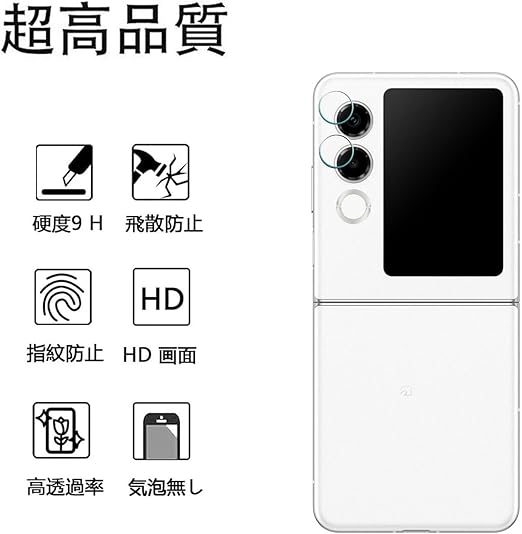 【日本製素材旭硝子製】日本製素材旭硝子製、業界硬度レベル9H以上、ハードコーティング技術により、日々の生活の中で発生するスリ傷から nubia Flip 2 のレンズを保護します。