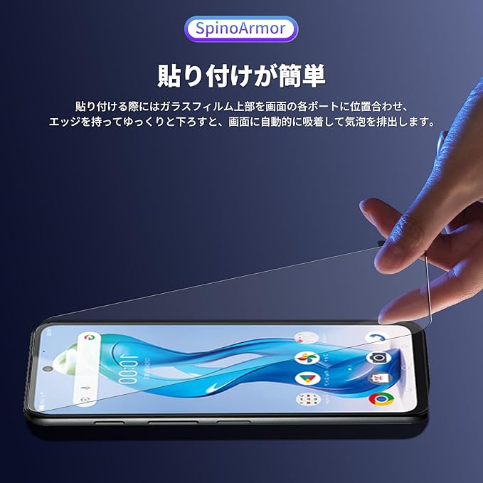 【簡単に貼り付け】保護フィルムの粘着面は自動吸着できるので、ガラスフ