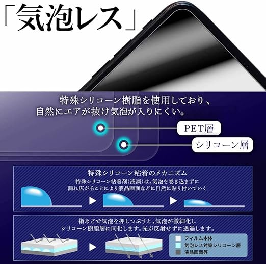 ★気泡レス---気泡レス加工で、自然にエアーが抜け、気泡が入っても抜きやすい。★貼り直しOK--特殊シリコ-ン粘着剤を使用しているので、貼りなおす事が可能です。