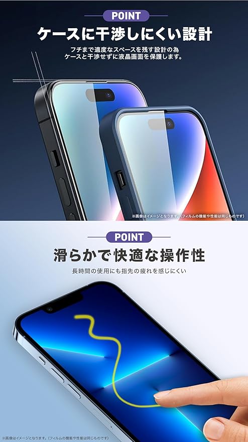 [加工] 特殊な2.5Dラウンドエッジ加工が施すことでエッジをなめらかにし、引っかかることなく一体感が生み出されます。飛散防止加工が施されていますので、万が一割れた際も破片が飛び散りません。また表面の特殊コーティング(指紋防止加工)により水や油をはじき、指紋や油脂が付いても簡単に拭き取ること