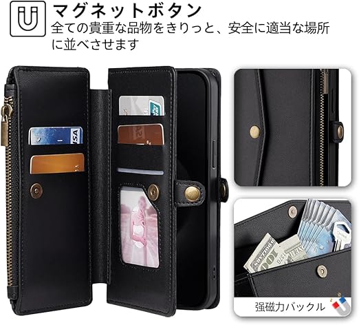 【ラグジュアリー感の手触りとデザイン】高品質なPUレザー素材を厳選しました。凹凸感のある 柔らかく 肌なじみのいい シュリンク PUレザー は、目に見える高級感と抜群な手触りが特徴です!柔軟性がありますので装着脱着ときも携帯本体に傷からしっかり保護できます。このスマホケースのデザインは、質感と使いやすさを追求しています。