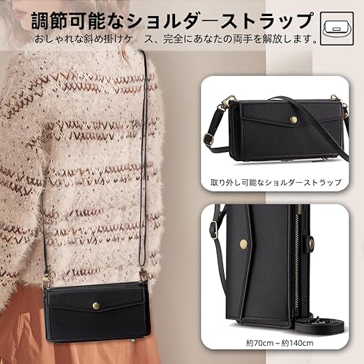 ZTE Nubia S 5G ケース ZTE Nubia S 5G カバー ZTE Nubia S 5G ケース 手帳型 Nubia S 5G A403ZT ケース【COKOVI】ショルダーベルトとストラップ付き 肩掛け 首掛け 多機能 ポーチ付き カード多め収納 小銭入れ おしゃれ 可愛い 大容量財布型HYF (ブラック, Nubia S 5G) a