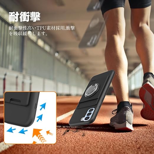 対応 ZTE Nubia S 5G ケース A403ZT リング付き シリコン カード収納 Nubia S 5G スマホケース スタンド機能 360°回転リング 耐衝撃 耐久 滑り止め 黑 a