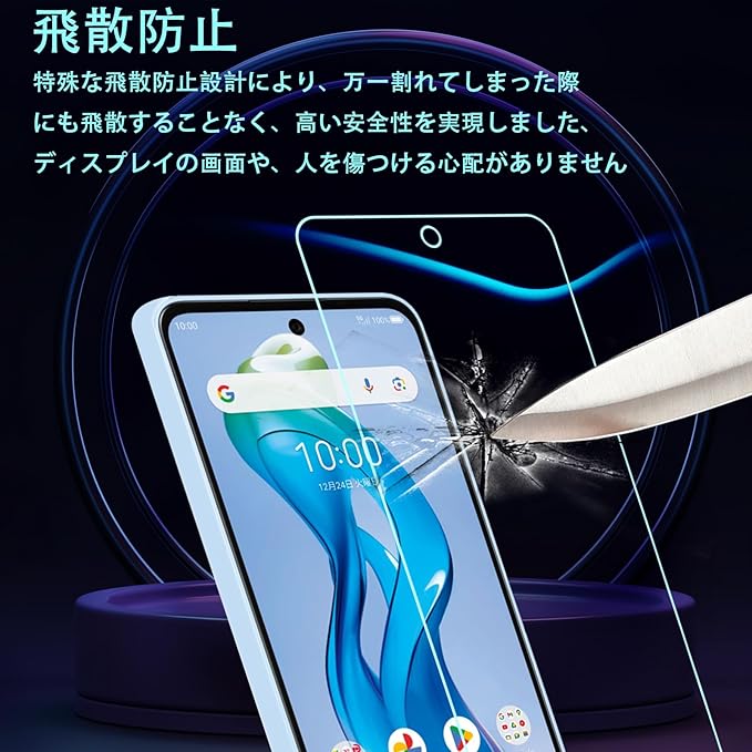 【表面硬度9H】カッターなどの鋭利なものを当たってもキズが付きにくくて高い強度を持ち表面硬度9Hが特徴です。ハードコーティング技術は、衝撃を最小限に抑えて画面の破損を抑え、すり傷防止や指紋防止もしっかりとスクリーンを保護