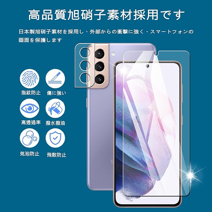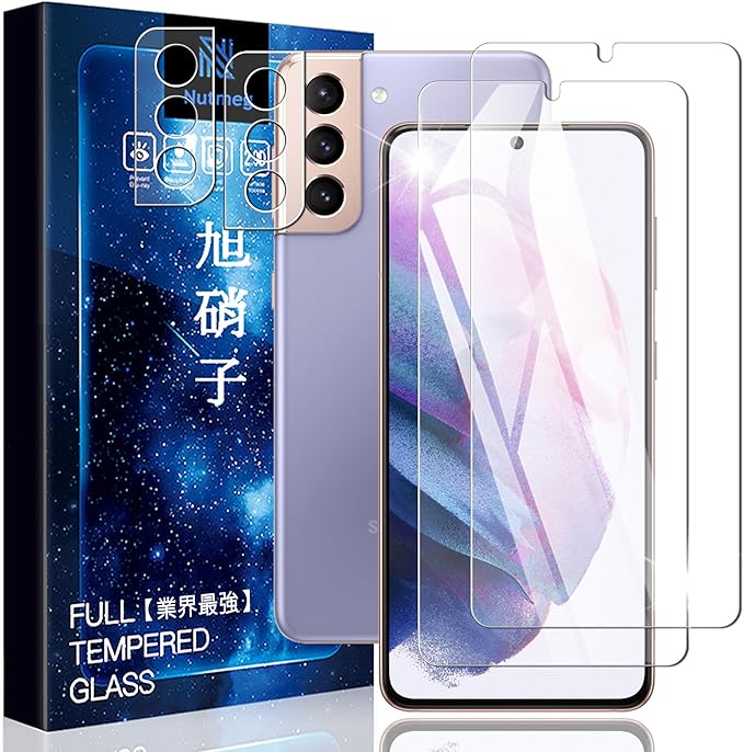 Nutmeg Galaxy S21 ガラスフィルム(2枚)+Galaxy S21 5G レンズフィルム(2枚)【旭硝子素材製 硬度9H】ギャラクシーS21 保護フィルム SCG09 SC-51B 強化ガラス 高透過率 飛散防止 指紋防止 耐衝撃 簡単貼り付け 気泡ゼロ 撥水撥油 a