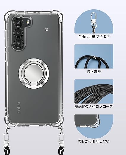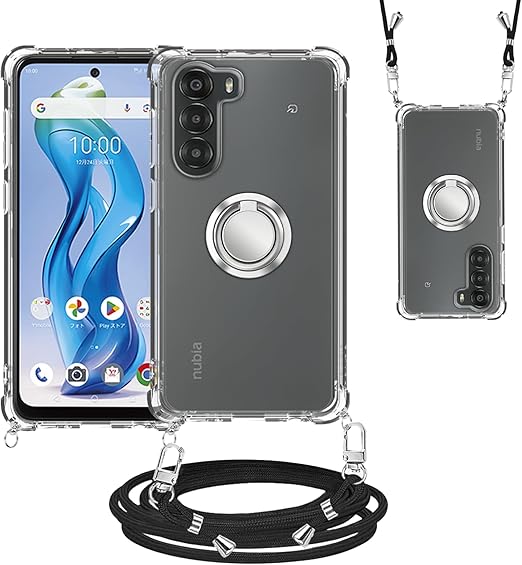 For Nubia S 5G ケース 全透明 クリア 保護カバー 車載ホルダー対応 YANMONGI リング付き スタンド機能 カバー 首かけ 肩掛け 斜めかけケース エアバッグ スマホケース 耐衝撃 TPU バンパー スクリーン & カメラ保護 落下防止 薄型 軽量 ストラップ付き 取り外し可能 長さ調整可能 Nubia S 5G 対応 【クリア】 a