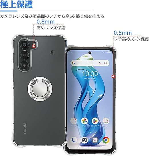 ZTE Nubia S 5G 用 ケース 保護カバー [HUKWIMO] 車載ホルダー対応 TPU製 ソフト 柔らかい手触り スクリーン & カメラ保護 耐衝撃 薄型 軽量 指紋防止 取付簡単 黄変防止 適用 Nubia S 5G [クリア 透明] a