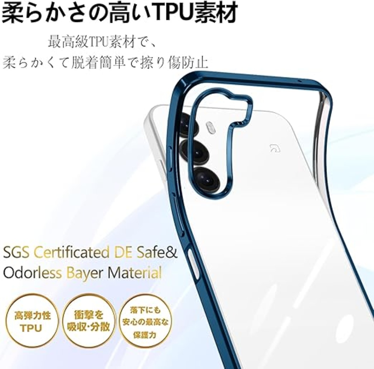 【360°全面保護】前面と背面をデバイスより高く設計し、液晶画面とカメラレンズをしっかり保護します。また四隅のコーナー部分にはクッションを搭載して
