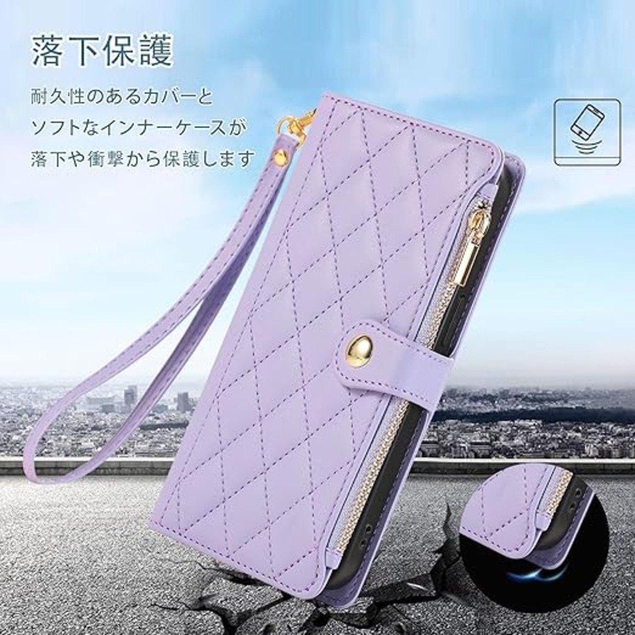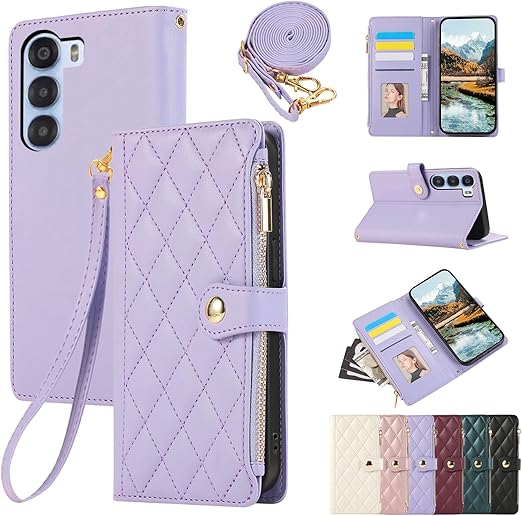 For ZTE Nubia S 5G ケース 手帳型 Nubia S 5G 用 ケース ショルダー A403ZT ケース ひし形柄 人気 女性 ヌビア s 5g ケース 手帳型 肩掛け カード収納 ジップ付き財布 横置き機能 シンプル お洒落 スマホケース (ミスティ・パープル) a