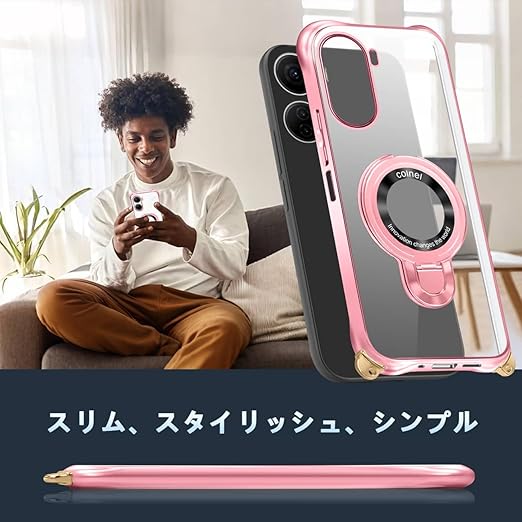 ZTE Libero 5G IV ケース クリア ショルダー 透明 リング付き スタンド機能 A302ZT ケース マグネット搭載 ZTE nubia Ivy スマホケー ス 120度反転スタンド 耐衝撃 米軍規格 携帯 紐付き 斜めがけ 織りストラップ付き ネックストラップ ショルダー 縦/横 2WAY 長さ調整可能 取り外し可能 落下防止 紛失防止(ローズゴールド) a