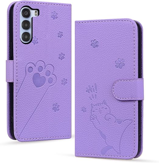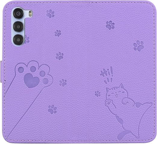 Mldjomid ZTE Nubia S 5G ケース 手帳型 うれしい気持ち ZTE A403zt ケース 手帳型 nubia S 5G カバー 幸せな子猫 内蔵マグネットカード入れ 軽量 PUレザー 全面保護 スタンド機能 Nubia S 5G カード収納 ZTE Nubia S 5G A403ZT 6.7 ケース 財布型 かわいい猫の足模様(紫色) a