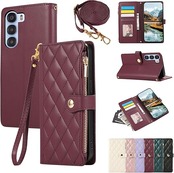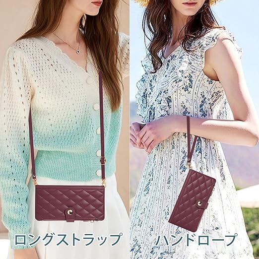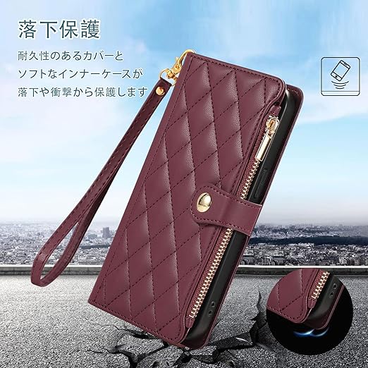 For ZTE Nubia S 5G ケース 手帳型 Nubia S 5G 用 スマホケース ショルダー A403ZT カバー ひし形柄 人気 女性 ヌビア s 5g ケース 手帳型 肩掛け カード収納 ジップ付き財布 横置き機能 シンプル お洒落 スマホケース (ワインレッド) a