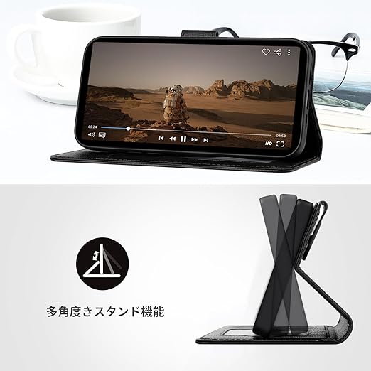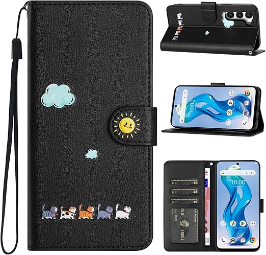 CASAFUNY ZTE nubia S 5G ケース 手帳型 人気 保護ケース A403ZT ケース 手帳型 PUレザー カバー ヌビアs 5Gケース お洒落 nubia s ケース手帳 人気 携帯カバー 可愛い猫柄 nubia S 5G a403zt ケース手帳型 軽量 携帯ケース スマホケース 耐衝撃 スマホカバー マグネット式 カード収納 スタンド機能(6.7インチ)ブラック a
