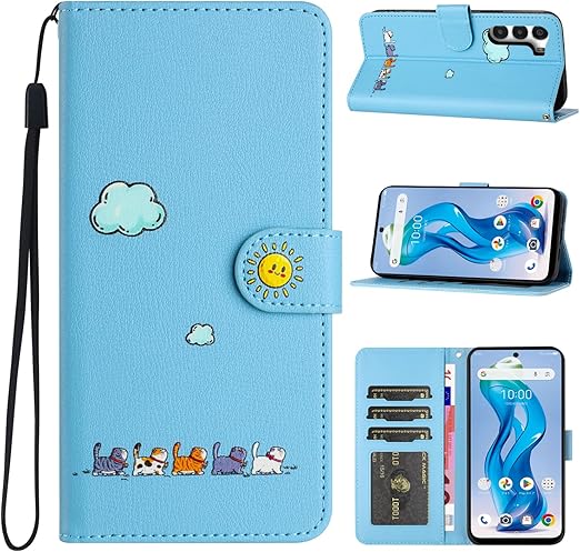 CASAFUNY ZTE nubia S 5G ケース 手帳型 人気 保護ケース A403ZT ケース 手帳型 PUレザー カバー ヌビアs 5Gケース お洒落 nubia s ケース手帳 人気 携帯カバー 可愛い猫柄 nubia S 5G a403zt ケース手帳型 軽量 携帯ケース スマホケース 耐衝撃 スマホカバー マグネット式 カード収納 スタンド機能(6.7インチ)ブルー a
