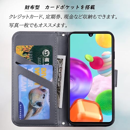 ❷【収納性・財布型】ケースの裏側にカードポケット2つ,クレジットカード、idカード、定期券を収納可能、透明ポケットに写真、名刺入れも可能です。❸【横置きスタンド機能付き】動画の視聴やテレビ電話などを長時間行っても疲れません