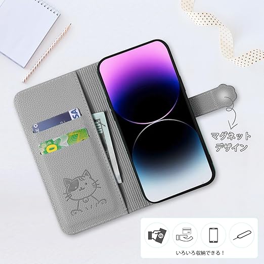【YIMASE 対応 ZTE Nubia S 5G ケース 手帳型 】ヌビア s 5g ケース 手帳型 すべてのコントロールと機能に正確かつ簡単にアクセス Nubia s スマホケース 可愛い nubiaS 5Gケース A403ZT スマホケース スタイリッシュでかわいい猫柄の ヌビア s5gケース -グレー a