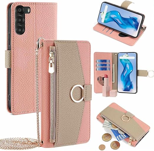 ZTE Nubia S 5G ケース 手帳型 A403ZT ケース ショルダー ストラップ付き nubia s 5g スマホケース スタンド機能 カード収納 ミラー付き 耐衝撃 肩掛け おしゃれ 女性 柔らかいTPU TOO&SOO ヌビア s 5g ケース カバー 斜め掛け - ピンク a