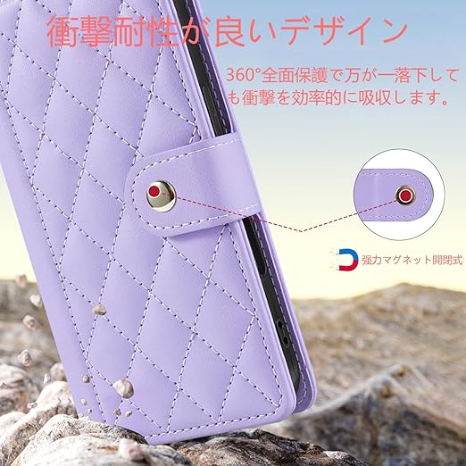 対応ZTE Nubia S 5G ケース 手帳型 【Vokpok】おしゃれ高級PUレザーとメタル金具マグネット開閉式 ヌビア S 5G 財布型 ケース カード収納機能 スタンド機能 耐衝撃 耐摩擦 液晶全面保護 レンズ保護 キルティグレザー調おしゃれ小香風 人気上品な シンプル気質 A403ZT スマホケース, パープル a