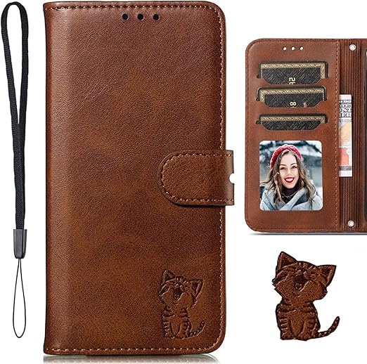 For nubia S 5G ケース 手帳型 nubia S 手帳型ケース スマホケース 携帯ケース カバー スマホカバー 携帯カバー 肌触り良いレザー TPUケース ストラップ付き 財布型 カードケース カード入れ ベルトマグネット スタンド機能 かわいい 笑顔猫柄 耐衝撃 落下防止 指紋防止 擦り傷防止 汚れ防止 薄型 (nubia S 5G 対応) ブラウン a