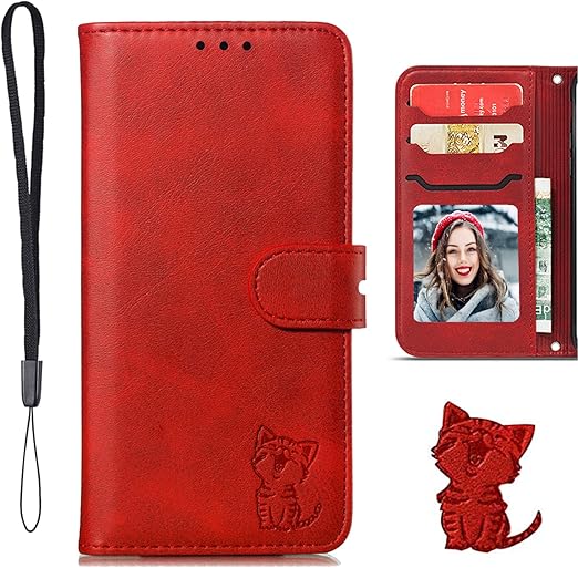 For nubia S 5G ケース 手帳型 nubia S 手帳型ケース スマホケース 携帯ケース カバー スマホカバー 携帯カバー 肌触り良いレザー TPUケース ストラップ付き 財布型 カードケース カード入れ ベルトマグネット スタンド機能 かわいい 笑顔猫柄 耐衝撃 落下防止 指紋防止 擦り傷防止 汚れ防止 薄型 (nubia S 5G 対応) レッド a