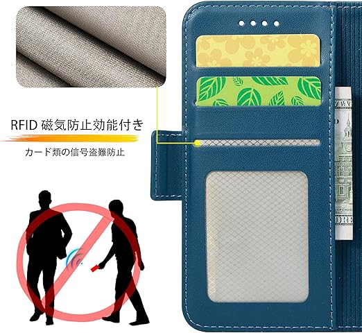 【RFID磁気防止 高品質レザー製】今回はカードポケットにRFID設計加入し、磁気カードを保護するために磁器遮断功能があり、スキミング防止、不正アクセスから大切なカード類の信号盗難防止でご財布をきちんとお守れ、クレジットカード、キャッシュカード、IDカードなどの個人情報を守れる。手帳型外部のカバーは肌感のような素材を採用しており、普通のレザーより、耐熱性と柔