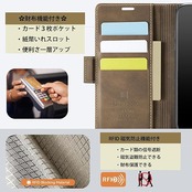 【こだわりの生地】 厳選のこだわりのPUレザーを使用、手に馴染みやすく、季節を選ばない質感。お好きな色を選べ、色合いを楽しみながら長年使用できる素材で。着脱しやすく、内側は柔らかいマットなTPU素材を採用して、高級感を持ちながらスマホを全面保護している手帳型ケースです。傷やホコリを防ぐこともでき滑り止めと指紋防止の効果を発揮します。