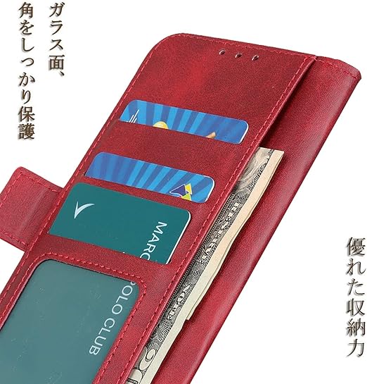 Nubia S 5G ケース 手帳型 ヌビア S 5G 手帳 ケース 高級PUレザー シンプル手帳ケース 耐摩擦 サイドマグネット式 カード収納 大容量 3枚 横置きスタンド機能 耐衝撃 レッド a