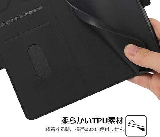 【素材】:軽量化デザインの薄型ケースです。マットの炭素繊維調のPUレザーを採用し、指紋防止の特徴を持って、汚れにくくて触感が優しい素材です。インナーケースは柔軟なTPUホルダーです、装着が簡単で本体を傷つける心配はありません。衝撃吸収機能も良くて、しっかりと端末を守り抜きます。