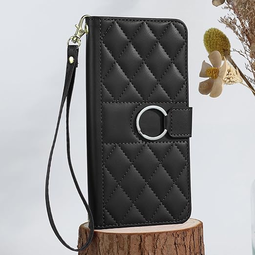 iffeenny ヌビア s 5g ケース マグネット開閉 360°保護 カード収納 スタンド機能 ダイヤモンドジオメトリックブラック a