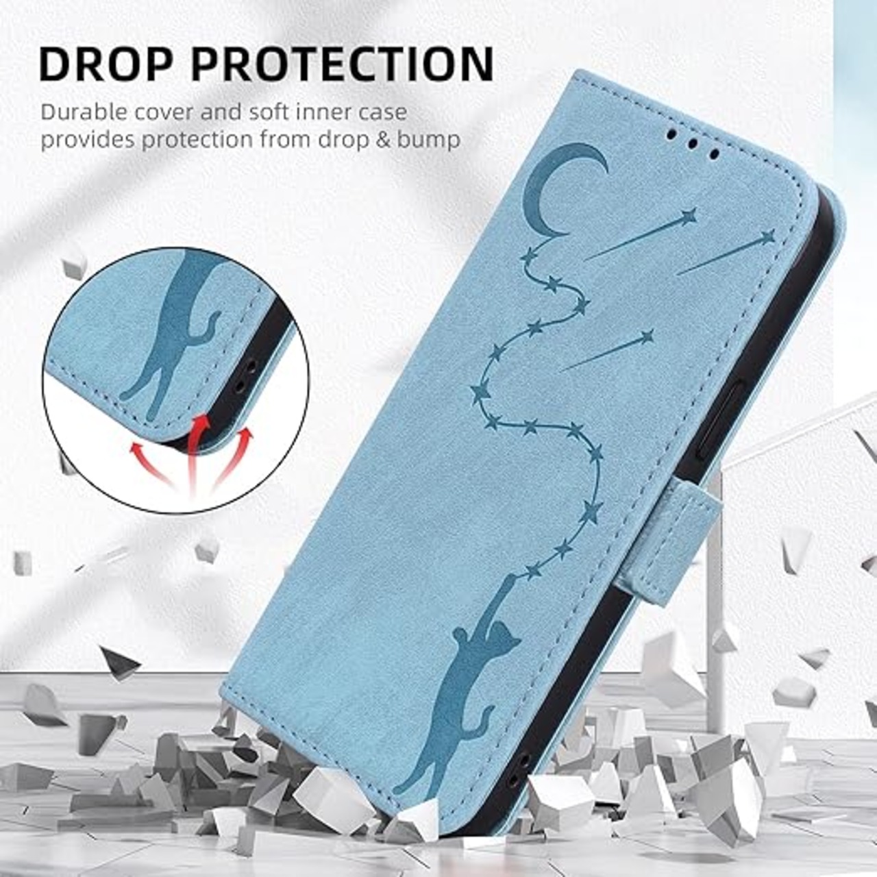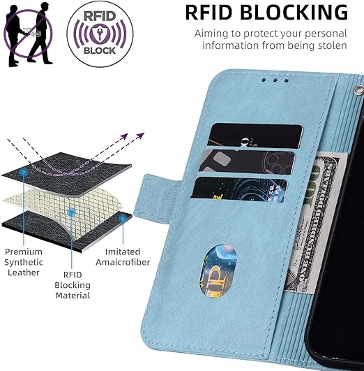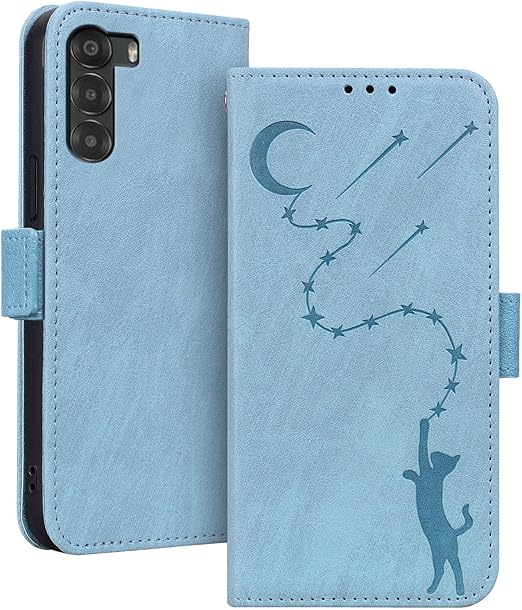 ZTE Nubia S 5G ケース ヌビアs 5g ケース スタンド機能 マグネット カード収納 耐衝撃 スマホケース nubia s 5g 財布型 全面保護 可愛い 猫柄 柔らかいTPU ONETHEFUL ZTE A403ZT ケース手帳型 - アイスブルー a