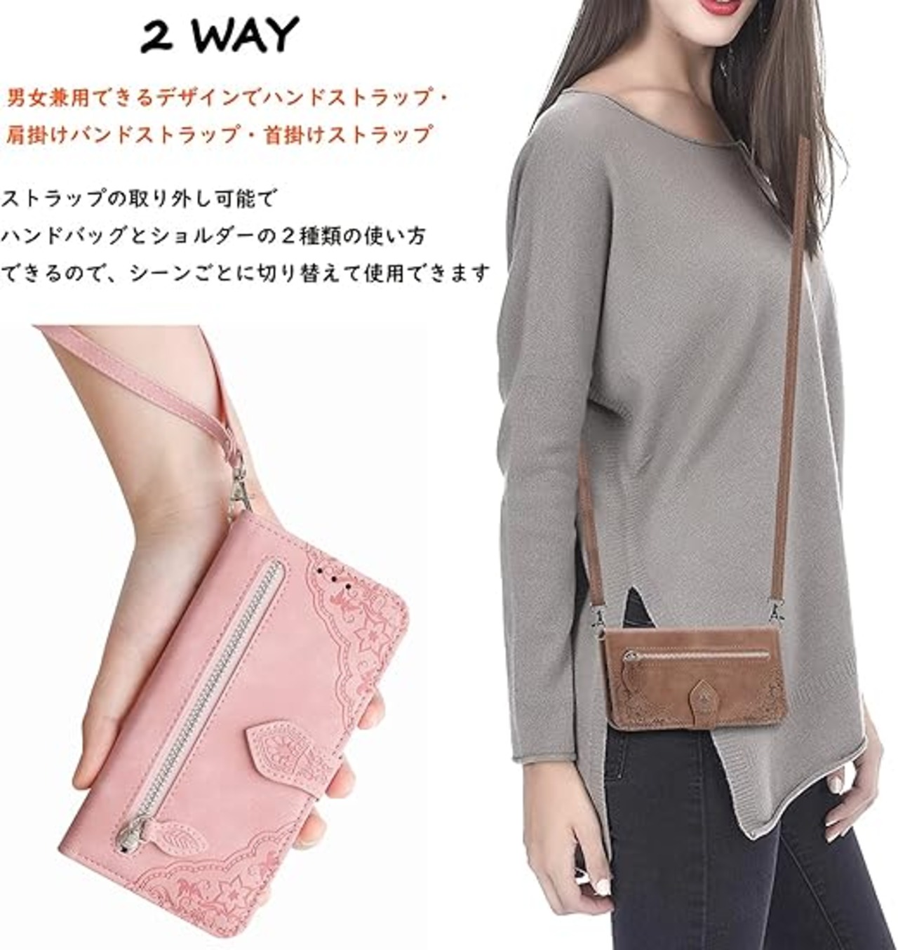 【2種類の携帯方式】調節可能ショルダーストラップ、可斜めがけ、可肩掛け。手にかけることもできますし、肩にかけることもできます。携帯