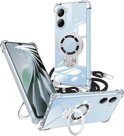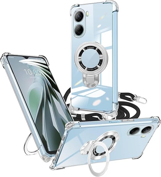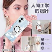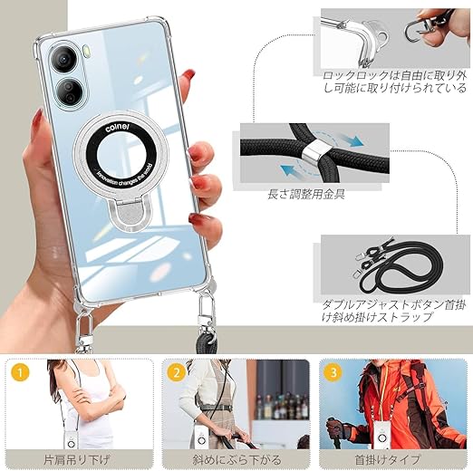 weiaoluo ZTE Libero 5G IV ケース クリア リング付き A302ZT ショルダー ZTE リベロ 5G IV/nubia Ivy (Z6561J)カバー 透明 耐衝撃 TPU Libero 5G IVケース 縦横両対応 マグネット搭載 調節可能 取り外し 薄型 肩がけ 首掛け 紐付きバンパー ストラップ付き ホール付き(縄掛け-ブラック) a