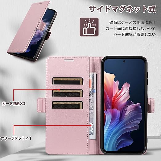 CeiLarv コンパチブル ZTE Nubia S 5G A403ZT ケース 手帳型 対応 マグネット開閉式 スマホケース 財布型 カードポケット付き 携帯カバー ケース 手帳 耐衝撃 ビジネス風 スタンド機能 高級PUレザー 全面保護 ヌビア エス ファイブジー A403ZT Case 対応 - ピンク a