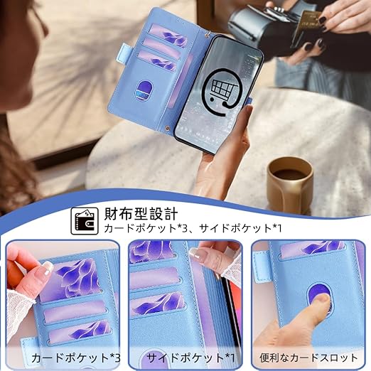 【多機能全面保護手帳ケース】衝撃吸収性と柔軟性に優れたTPU素材を採用し、画面より少しだけ高
