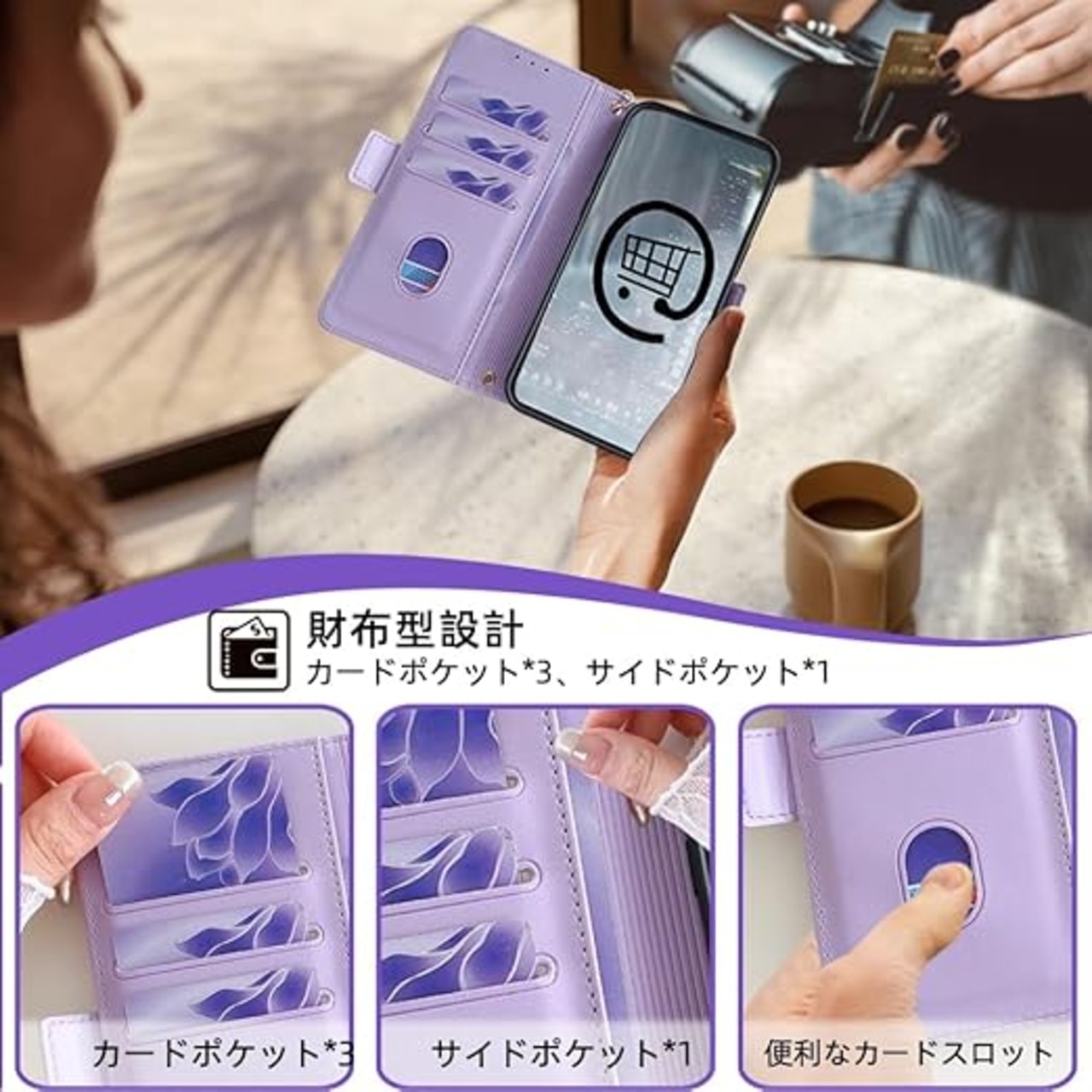 【多機能全面保護手帳ケース】衝撃吸収性と柔軟性に優れたTPU素材を採用し、画面より少しだけ高