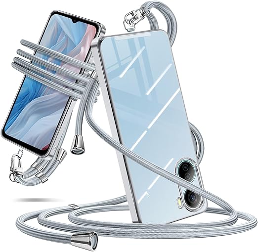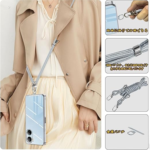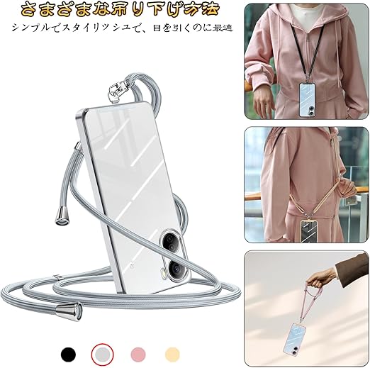 ZTE Libero 5G IV ケース ショルダー クリア nubia Ivy A302ZT ケース リベロ5g IV スマホケース カバー 肩掛け 斜めかけ 縄掛けケース 耐衝撃 透明 紐付き 斜めがけ 織りストラップ付き ネックストラップ 長さ調整可能 取り外し可能 紛失防止 ワイヤレス充電対(シルバー) a